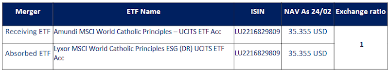 Definito il rapporto di cambio per un Amundi ETF per la fusione effettiva dal 25 Febbraio 2025