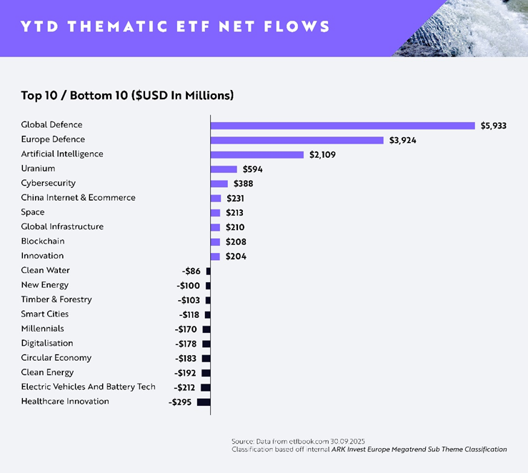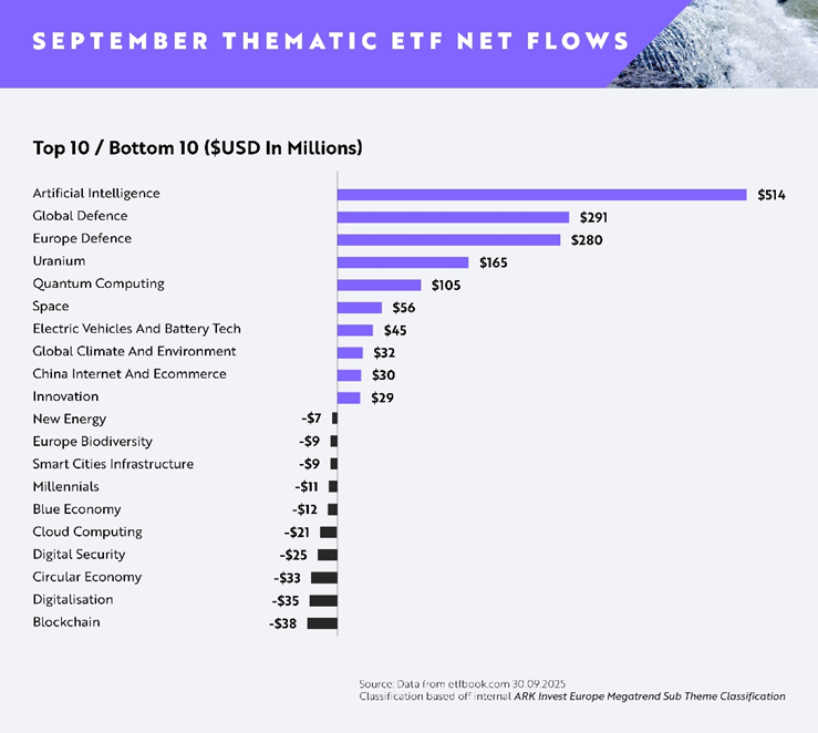 ARK Invest : A settembre 2025 i flussi netti sugli ETF tematici in Europa sono stati pari a +1,5 miliardi di dollari.