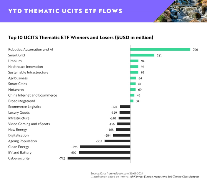 ARK Invest : Settembre è stato un mese difficile per gli ETF tematici UCITS, con deflussi per un totale di -533 milioni di dollari.