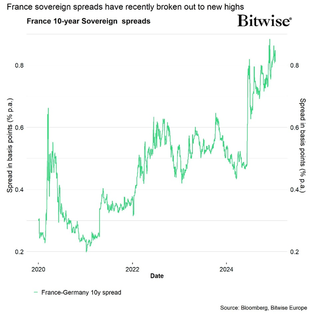 For instance, the spread between French 10-year yield and the German government 10-year yield has risen to the highest level since July 2012 – when the Euro debt crisis plagued the European continent. France’s 10-year yield has recently risen above the yield of Greece which speaks volumes in terms of fiscal uncertainty facing the French sovereign.