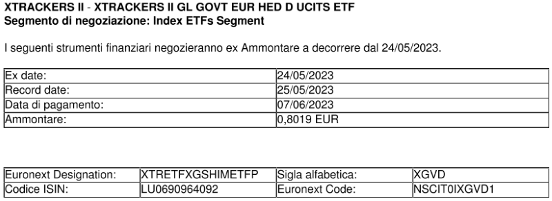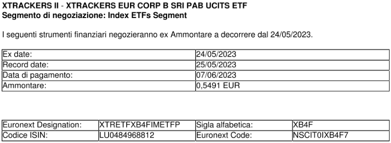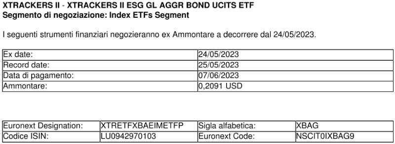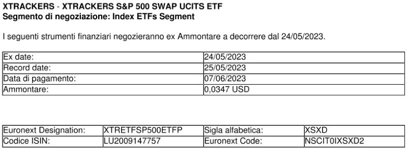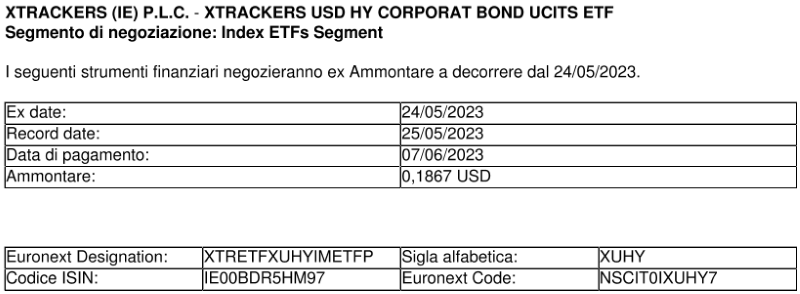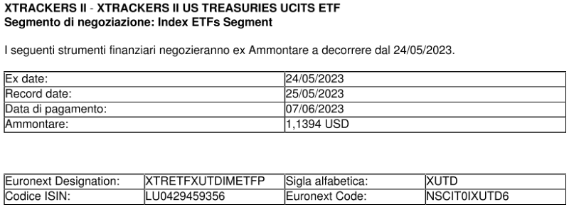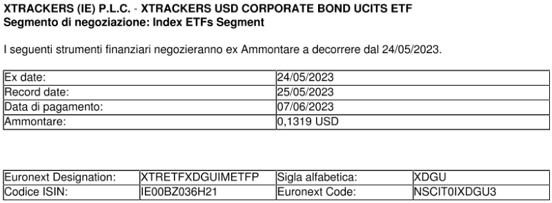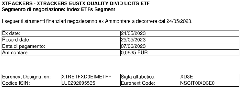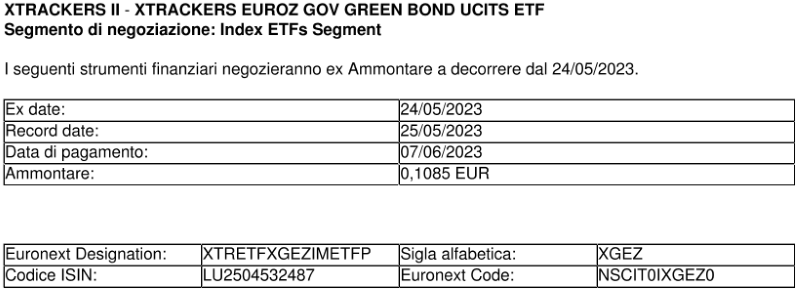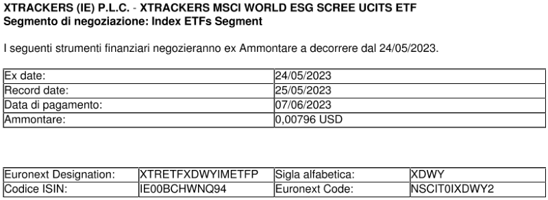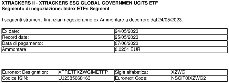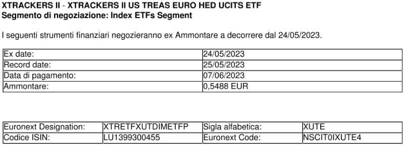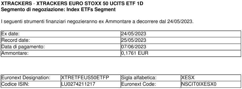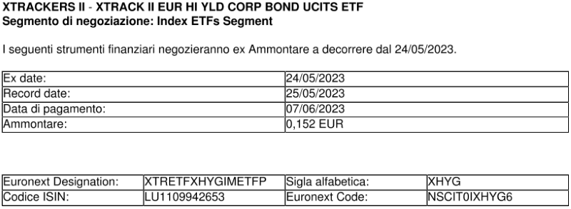 DWS ETF comunica che distribuirà agli Azionisti i seguenti dividendi indicati nelle tabelle sottostanti.