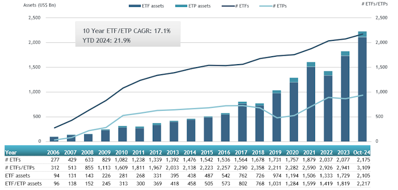 ETFGI reports net inflows of US$207.79 billion in the first 10 months of 2024 surpass the prior full year record of $193.46 Bn in 2021