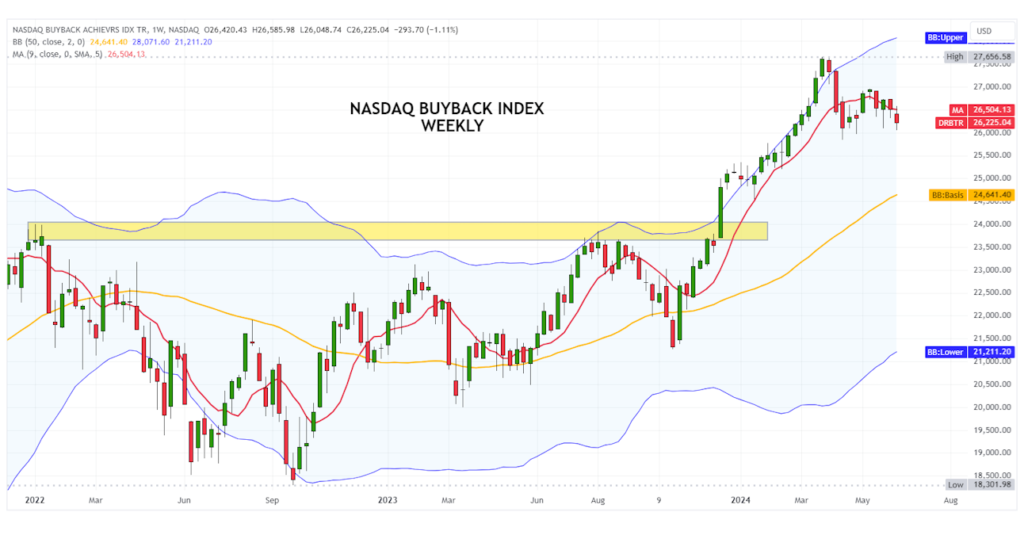 Il Nasdaq BuyBack Index, dopo aver superato di slancio la solida barriera grafica posta in area 23.850-24.000 punti, ha compiuto un veloce spunto rialzista ed è salito fino ad un picco di 27.656 punti.
