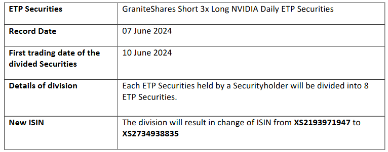 GraniteShares : Frazionamento azionario per un ETP quotato sulla piattaforma ETFPlus di Borsa Italiana