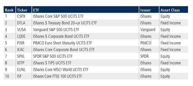 Half of the top ten spots were occupied by equity-based products, with the iShares Core S&P 500 UCITS ETF moving one place up from the month prior to be ranked first in January.