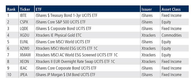Half of the top ten spots were occupied by fixed income products in November, with the iShares $ Treasury Bond 1-3yr UCITS ETF ranked first. The fund aims to reflect the return of the ICE U.S. Treasury 1-3 Year Bond Index.