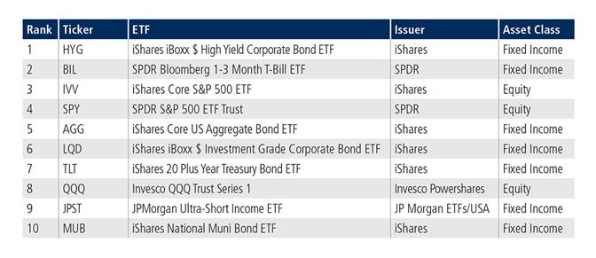 Seven of the top ten ETFs by traded notional volume were fixed income-based. The iShares iBoxx $ High Yield Corporate Bond ETF moved one place up from October to take November’s top spot, with last month’s top ETF, SPDR Bloomberg 1-3 Month T-Bill ETF, moving to second place.