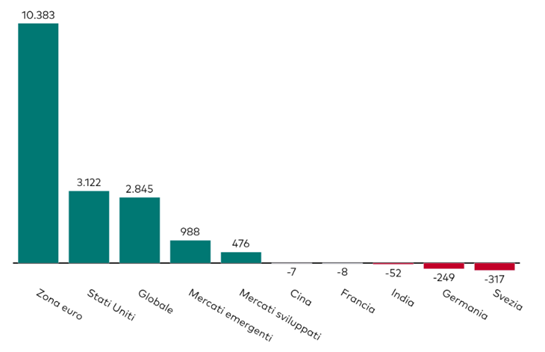 Flussi indirizzati soprattutto verso le esposizioni all’Area Euro